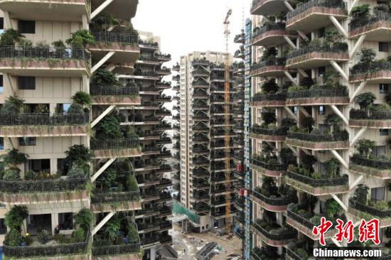 On Nov. 23, the construction of a new residential community in Xindu District of Chengdu was in full swing. The residential area is the first fourth-generation housing project in China. The balcony of each apartment is home to a private garden, complete with greenery which looks impressive from above, and is also the first “vertical forest” residential community in the area. This generation of housing focuses on increasing the flat area available for planting, raising the rate of greenery and finding new space for the growth of plants, therefore developing vertical greening has become a useful measure to improve the ecological environment of modern cities. (Photo/Zhang Lang)