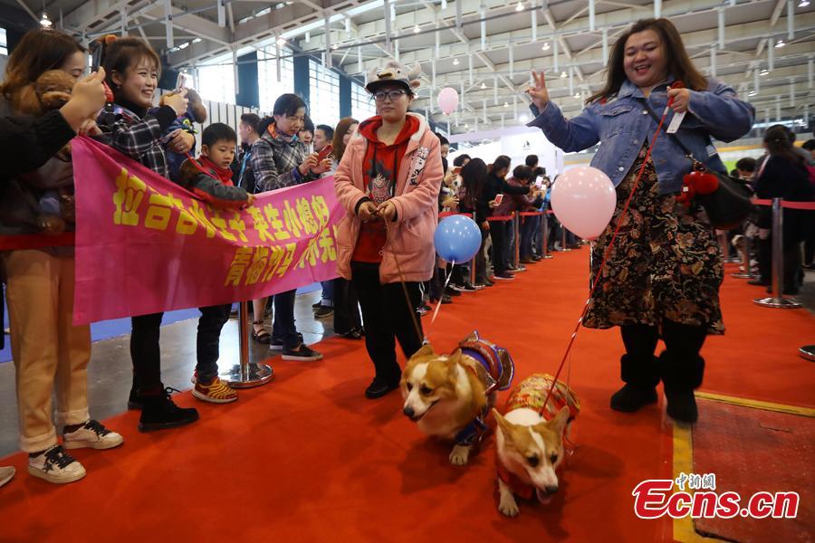 A "group wedding" is held for nearly 100 pet dogs of different breeds at the 2108 China (Nanjing) Pet Culture Festival in Nanjing, Jiangsu Province, Nov. 24, 2018. (Photo: China News Agency/Yang Bo)