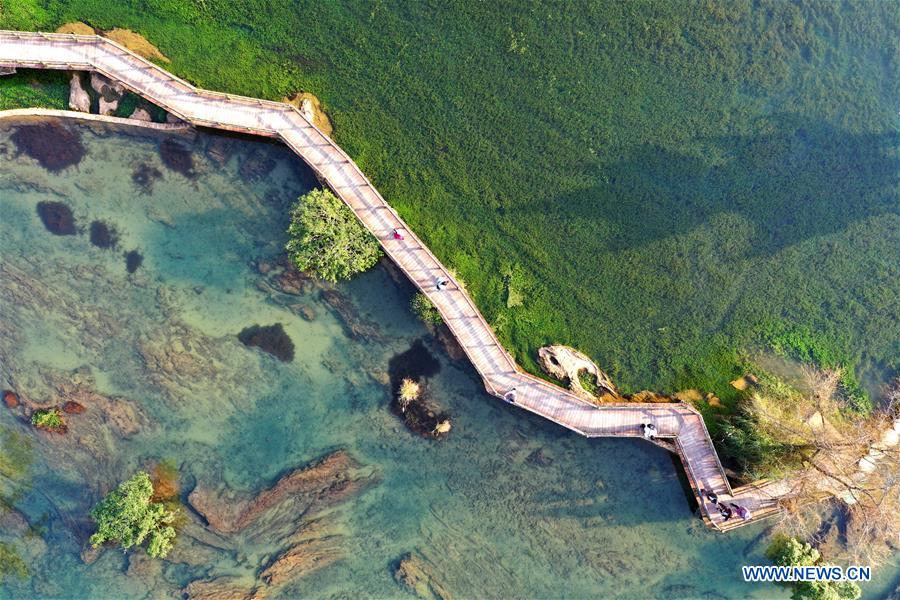 Aerial photo taken on Nov. 27, 2018 shows the scenery of E'quan Village under Xinjing Town in Jingxi, south China's Guangxi Zhuang Autonomous Region. (Xinhua/Zhang Shanchen)
