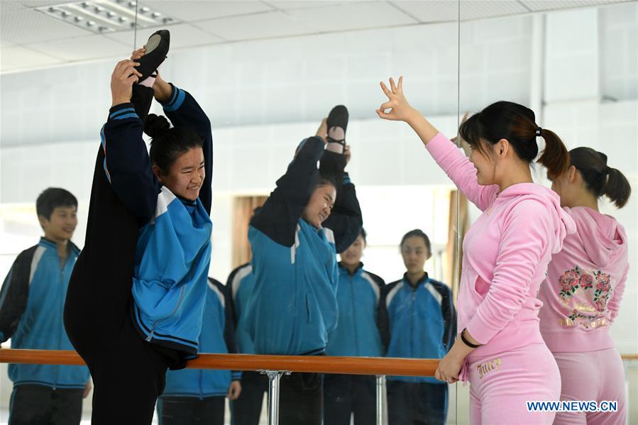 Special education teacher Zhao Yu rehearses a dance with her students in the municipal special education school in Shijiazhuang, capital of north China's Hebei Province, Nov. 29, 2018. As a dance teacher at the Shijiazhuang Municipal Special Education School, Zhao Yu has to break down communication barriers with the students, who suffer from either visual/hearing impairment or autism. Her dancing team has won multiple honours in art events nationwide, but it took time and effort to achieve successful cooperation. "A five-minute dance might cost us more than 700 days of rehearsal, during which tens of thousands of repetitive trainings are done," said Zhao. (Xinhua/Liang Zidong)