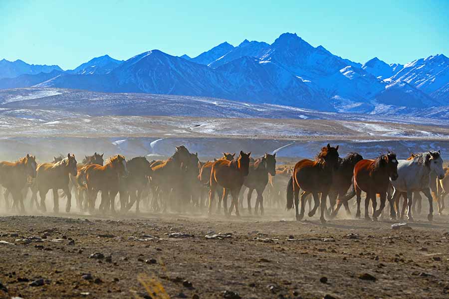 Thousands of horses gallop around the Shandan Military Horse Farm, NW China's Gansu province.[Photo by Cheng Lin for chinadaily.com.cn]