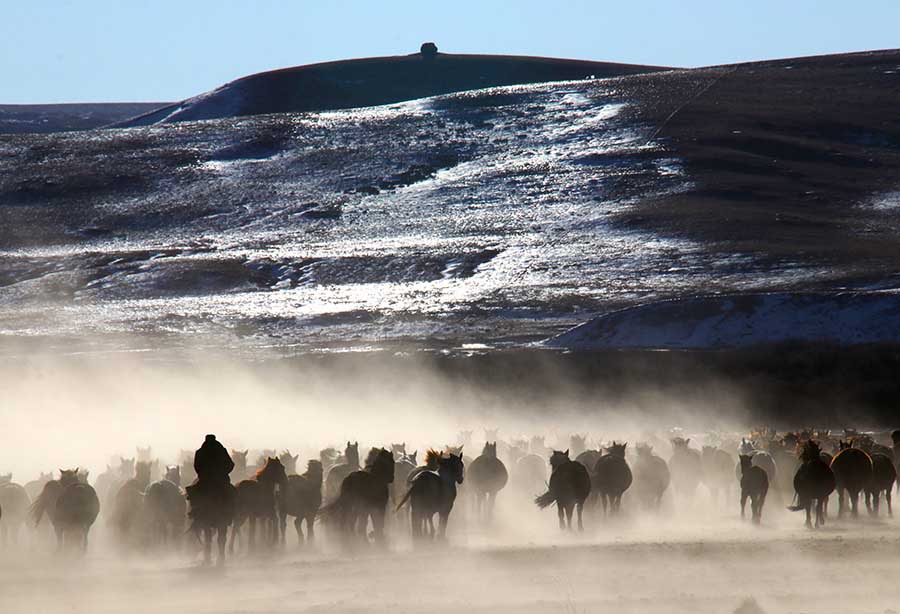 Thousands of horses gallop around the Shandan Military Horse Farm, NW China's Gansu province.[Photo by Cheng Lin for chinadaily.com.cn]