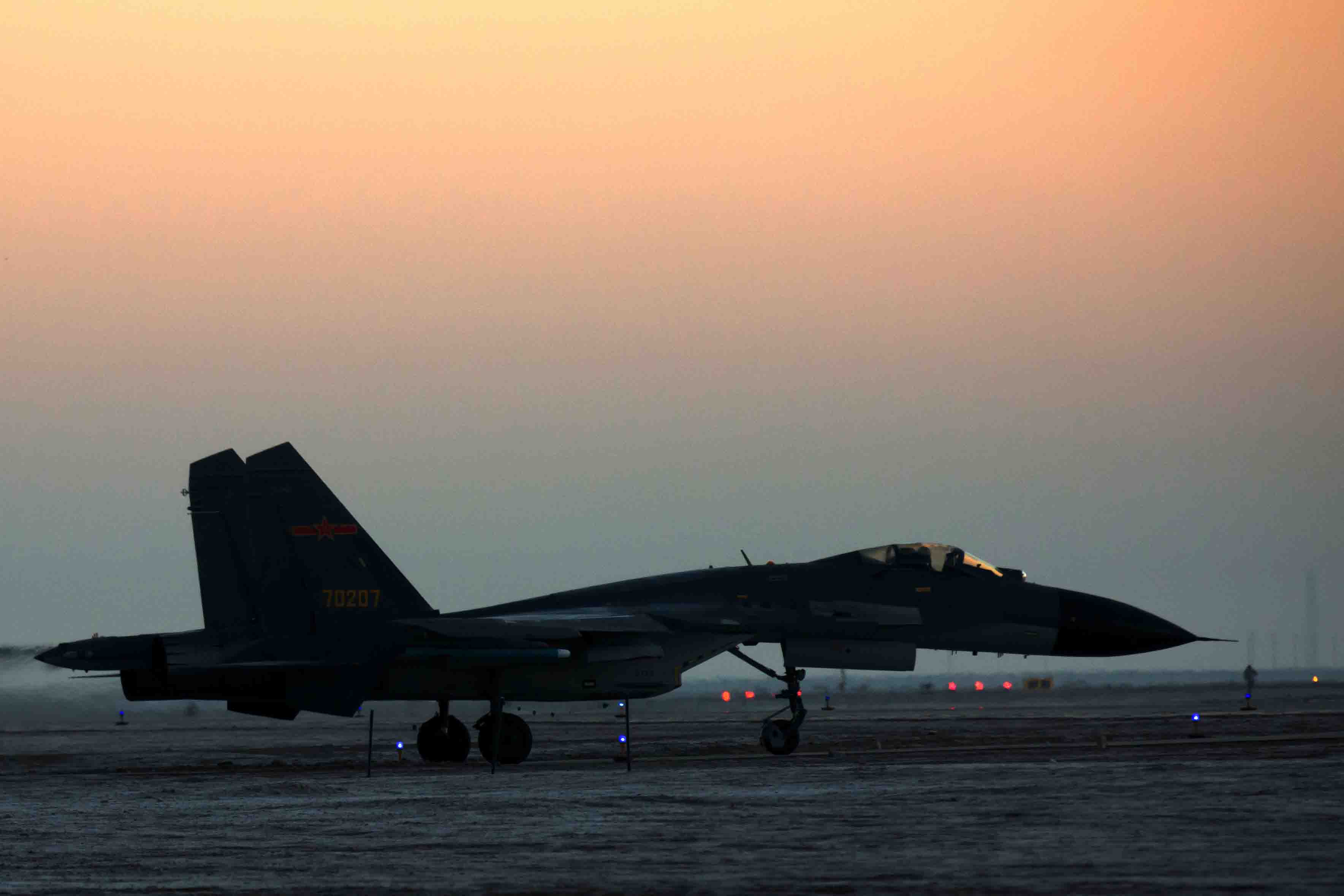 A J-11 fighter jet attached to an aviation brigade of the air force under the PLA Northern Theater Command takes off for a combat training exercise on the early morming of November 21, 2018. (eng.chinamil.com.cn/Photo by Wang Jingwen and Liu Shurui)