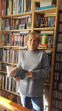 Relinque stands in front of her shelf. Photo by Ye Qi from People’s Daily