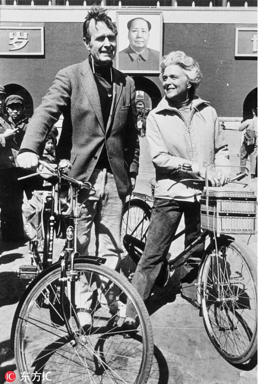 During his time as head of the US Liaison Office in China, Bush and his wife often explored the streets of Beijing on bicycle and the pair became known as the “bicycle-riding envoy.”