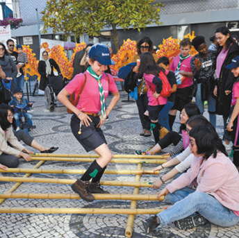 Students of Confucius Institute at Aveiro University perform bamboo dance. (Photo/Xinhua)