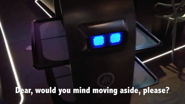 Adding to their cutesy charm, if a customer gets in the way of a robot, it is pre-programmed with phrases such as “Dear, would you mind moving aside, please? We can take selfies after work!” and “Would you mind moving aside, please? Or I’ll get angry!”