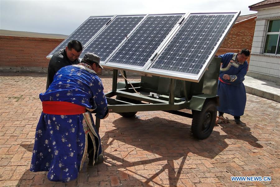 Local herdsmen move solar power equipment in East Ujimqin Banner, Xilingol, north China's Inner Mongolia Autonomous Region, May 8, 2010. Over the past 40 years, technological advances have brought sweeping changes to the vast grasslands of Inner Mongolia Autonomous Region, which occupies more than 12 percent of China's land area. Technologies ranging from automatic feeding and drinking machines to smart fences and remote-controlled irrigation systems have not only made the lives of herdsmen easier but also raised their incomes and freed many people from a life of drudgery. Changes in housing and transportation have also occurred. Houses specially designed by architects for nomads are equipped with thermal insulating walls and a solar heating system. By the end of 2017, the number of private cars in the region surpassed 2.7 million, compared with around 10,000 in 1987. In addition to the material changes, people's mindsets have also changed as well. In history, ethnic minority groups including Mongolians paid very little attention to business. The Internet has brought products from around the country to the grassland and many herders run stores selling dairy products. (Xinhua/Li Xin)