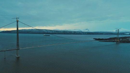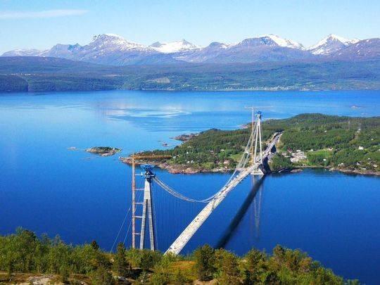 With a total length of 1,533 meters and a free span of 1,145 meters, the Halogaland Bridge near Norway's northern port city of Narvik is the longest suspension bridge within the Arctic Circle.