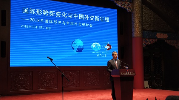 Wang attended the Symposium on International Developments and China's Diplomacy in 2018 hosted by the China Institute of International Studies and China Foundation for International Studies.