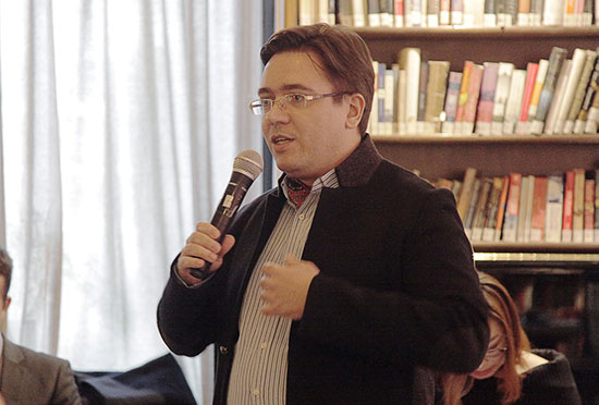 David Bartosch shares his thoughts at Bookworm in Sanlitun, Beijing, Dec 12, 2018. [Photo by Chen Xinyu/chinadaily.com.cn]