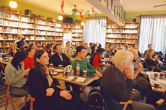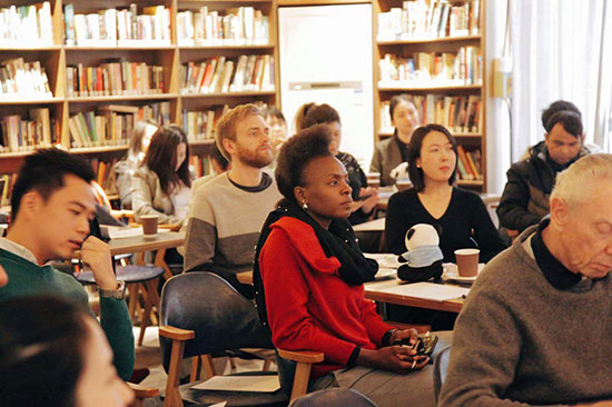 Participants listen as expats share their stories at Bookworm in Sanlitun, Beijing, Dec 12, 2018. [Photo/chinadaily.com.cn]