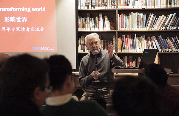 Alex Chen shares his experiences at Bookworm in Sanlitun, Beijing, Dec 12, 2018. [Photo by Chen Xinyu/chinadaily.com.cn]