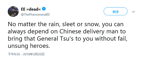 Take for example China’s $32 billion online food-delivery market. Day or night and rain or shine, Chinese food delivery workers can be seen racing to deliver meals to doorsteps. Order a cup of coffee and it will be delivered to you hot, regardless of the weather. Even in America, the hardworking spirit of the Chinese people is seen and appreciated.