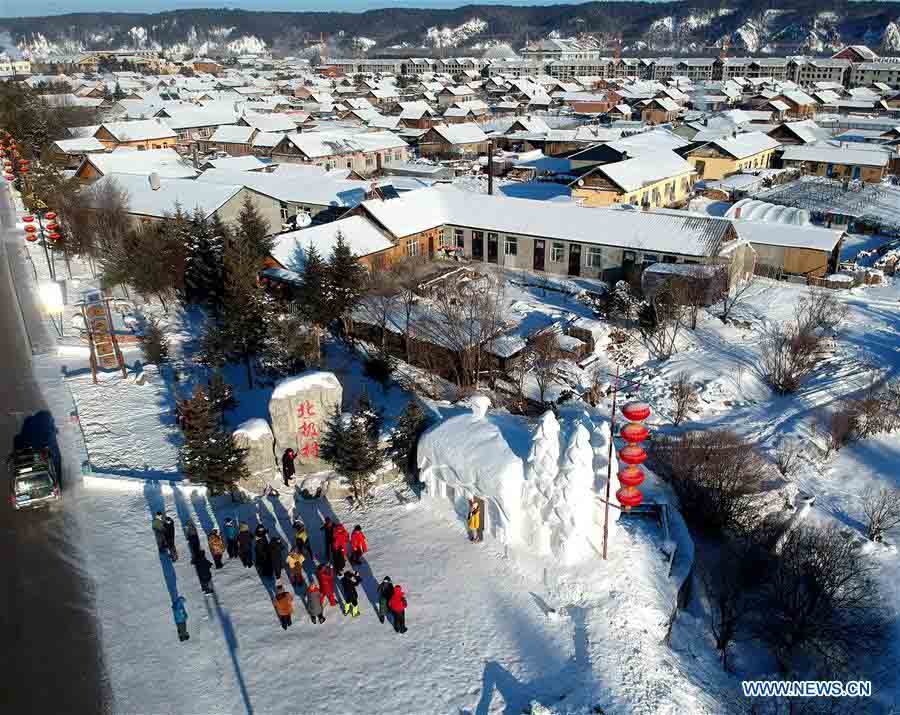 Photo taken on Dec. 16, 2018 shows the scenery of Beiji Village in Mohe, northeast China's Heilongjiang Province. Mohe greets the peak season for tourism as winter comes. (Xinhua/Chu Fuchao)