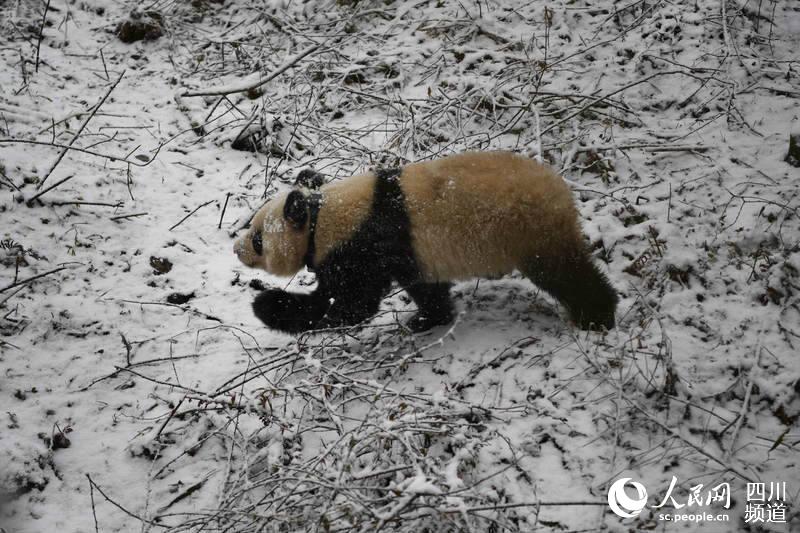 Giant Panda, Qinxin, walks in a national nature reserve in southwest China's Sichuan Province, December 27 2018.  (Photo: People.cn)
