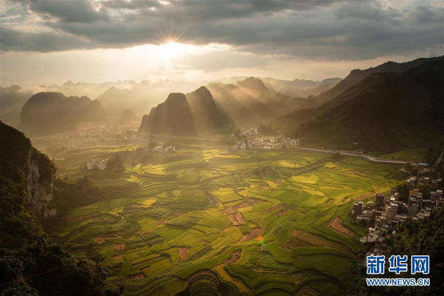 Photo taken on Aug. 29, 2018 shows the terraced fields surrounded by mountains in Simeng township of Donglan county in Hechi in south China's Guangxi Zhuang Autonomous Region. In 2018, photographers used their equipment to capture the beauty of China throughout the four seasons all around the country. (Photo/Xinhua)