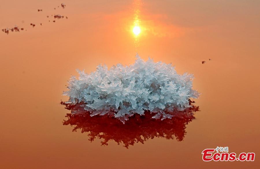 A view of the scenery of mirabilite rime on the Salt Lake in Yuncheng City, North China's Shanxi Province, Jan. 2, 2019. Mirabilite rime is formed when mirabilite crystalizes at low temperatures in the inland saltwater lake, formed about 500 million years ago and known as “China’s Dead Sea.” (Photo: China News Service/Jiang Hua)