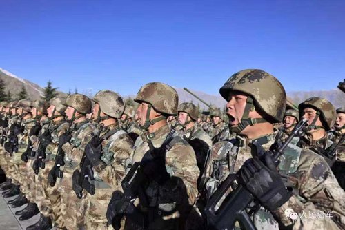 Soldiers from the People's Liberation Army in Southwest China's Tibet Autonomous Region attend a training mobilization meeting. Photo: courtesy of the People's Liberation Army Ground Force