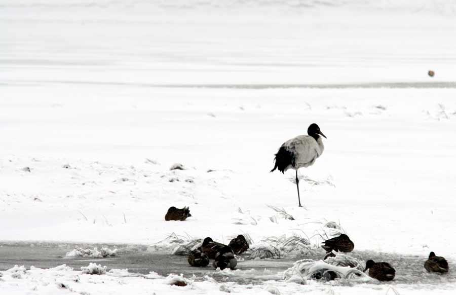 Black-necked cranes are seen at Dashanbao National Nature Reserve for Black-necked Cranes in Zhaotong city, Southwest China's Yunnan Province. (Photo by Zheng Yuanjian for chinadaily.com.cn)