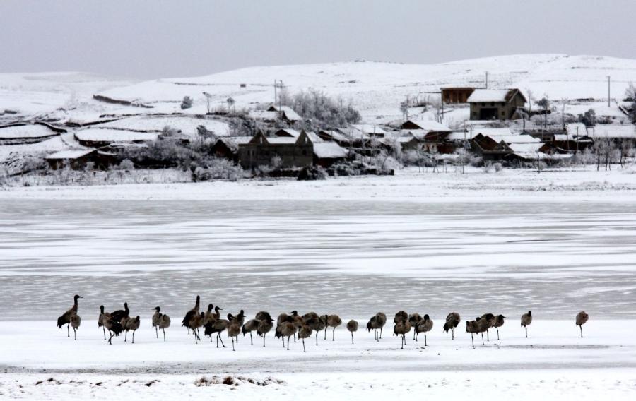 Black-necked cranes are seen at Dashanbao National Nature Reserve for Black-necked Cranes in Zhaotong city, Southwest China's Yunnan Province. (Photo by Zheng Yuanjian for chinadaily.com.cn)