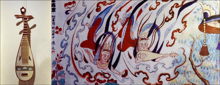 Pipa, a plucked string instrument, is seen in a mural in the No 321 Cave of the Mogao Grottoes. (Photo/chinadaily.com.cn)