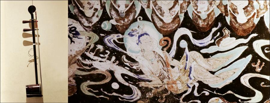 Huqin, a traditional stringed instrument, is seen in a mural in the Yulin Cave of the Mogao Grottoes. (Photo/chinadaily.com.cn)