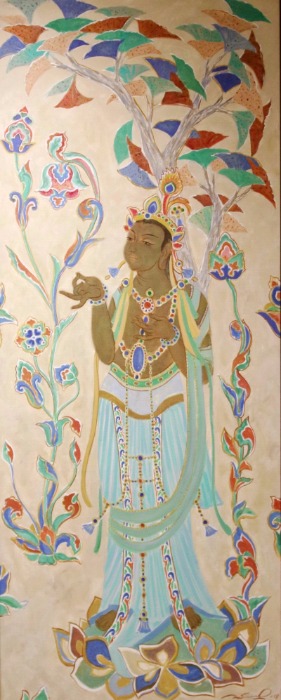A painting by a Russian artist portrays the Avalokitesvara Bodhisattva, or Guanyin in Chinese, from the No 321 Cave of the Mogao Grottoes. (Photo/chinadaily.com.cn)