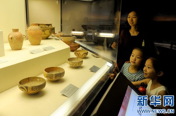 Two children watch exhibits in Henan Museum. (Photo/Xinhua)