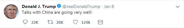 On Jan. 8, US President Donald Trump tweeted that “Talks with China are going very well!” It showed that Washington was also keeping a close eye on the progress of the talks.