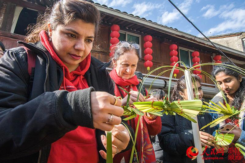 The visitors make handicrafts. (Photo/Zhang Yongtao)