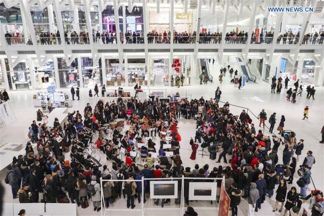 Musicians perform during a symphony concert for Chinese New Year at the Oculus of the World Trade Center in New York City, the United States, Feb. 8, 2019. [Photo: Xinhua]