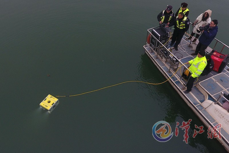 On January 28, the police officers of the water police station of the Public Security Bureau of Xiangyang Yuliangzhou Economic Development Zone searched the vehicle fallen in water by remote control of the submerged robot.