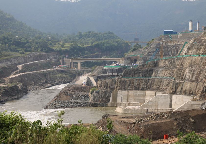 “The project has entered the construction peak period, with more than 4,000 on-site staff and about 500 sets of heavy mechanical equipment,” Zhang Jun, head of engineering at the Karot hydropower project, told People’s Daily.