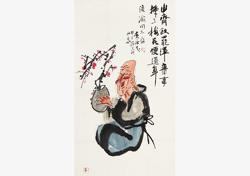 Huang Yongyu, A multi-talented master painter born in 1924, is known for his woodblock prints, ink paintings and literary works. His painting is a mixture of practiced skill and naive heart, creating an interesting style. The painting above depicted a famous poem of "the Spring Festival comes closer after the plum blossom".