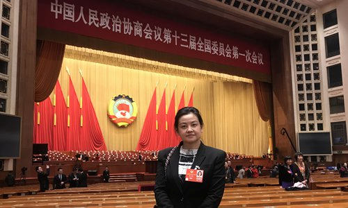 Zhu Yiyuan, Chairman for African Chinese Woman Association and Consultant for Consular Protection Affairs of the Chinese Consulate General in Johannesburg, attended the first session of the 13th CPPCC National Committee in 2018. Photo: Courtesy of Zhu Yiyuan