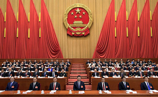 Xi Jinping, general secretary of the Communist Party of China Central Committee, president, and chairman of the Central Military Commission, attends the opening meeting of the second session of the 13th National People’s Congress at the Great Hall of the People in Beijing on Tuesday. FENG YONGBIN / CHINA DAILY