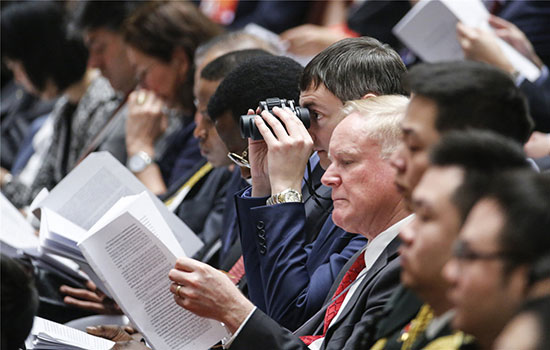 Foreign diplomats read the Government Work Report. KUANG LINHUA/CHINA DAILY
