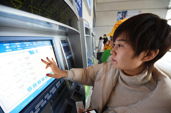 A passenger buys a ticket on a ticket vending machine on Feb.1, 2019. (Photo by Bao Gansheng from People’s Daily Online)