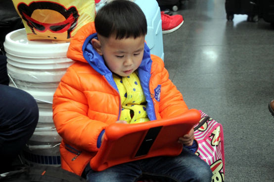 A boy plays online games while waiting for the train in southeast China’s Jiangsu Province. Photo: Wang Jiankang, People’s Daily online