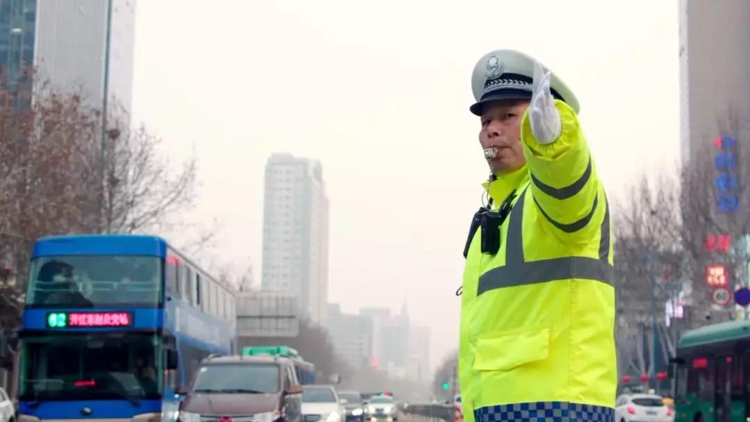 At 5 pm in Henan, a traffic policeman directs traffic.