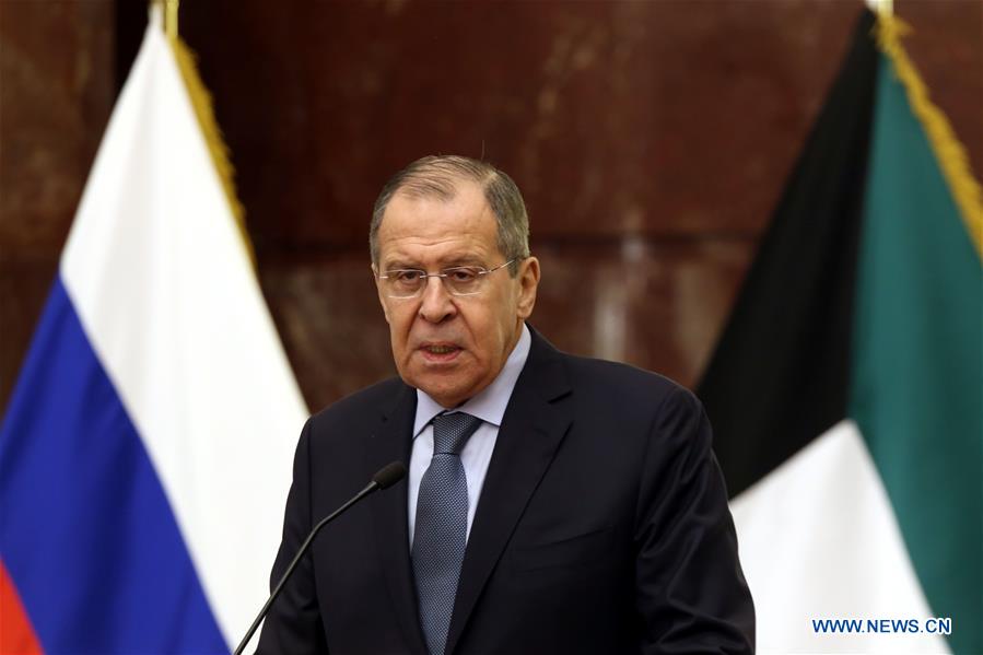 Russian Foreign Minister Sergey Lavrov speaks at a press conference in Kuwait City, capital of Kuwait, on March 6, 2019. Russia supports all efforts of Kuwait and welcomes means to preserve the unity of the Gulf Cooperation Council (GCC), Sergey Lavrov said on Wednesday. (Xinhua/Joseph Shagra)