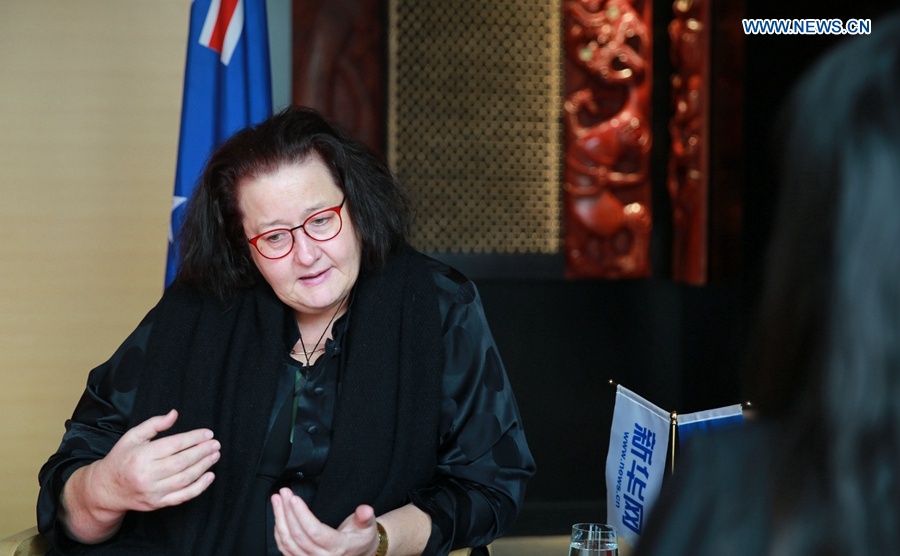 New Zealand’s Ambassador to China Clare Fearnley accepts an interview with Xinhuanet in Beijing, capital of China, March 1, 2019. (Xinhuanet/Zhou Xin)