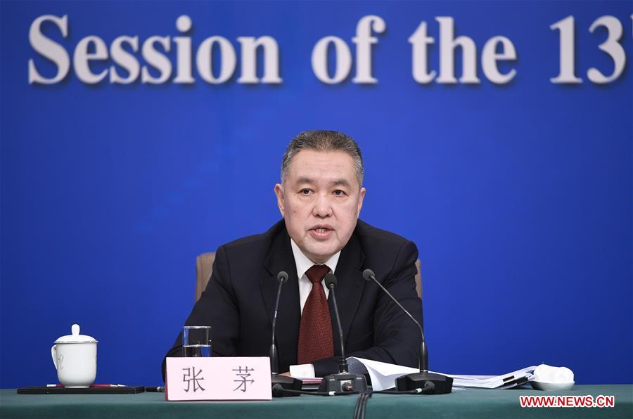Zhang Mao, chief of the State Administration for Market Regulation, attends a press conference on "strengthening market regulation and maintaining market order" for the second session of the 13th National People's Congress (NPC) in Beijing, capital of China, March 11, 2019. (Xinhua/Wang Peng)