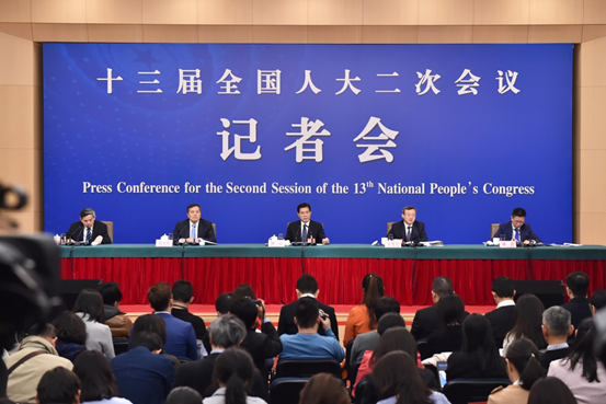 Officials with China’s Ministry of Commerce attend a press conference on China's domestic market and all-round opening-up for the second session of the 13th National People's Congress (NPC) in Beijing, March 9, 2019. (Photo from People’s Daily Online)