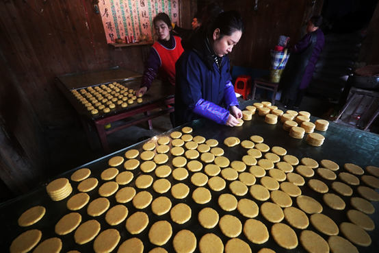 A villager from Yinhe village of southwest China’s Chongqing is sorting glutinous rice cakes, January 21, 2019. Glutinous rice cakes are made of glutinous rice, sorghum, millet and corn, endowed with a meaning of reunion, good luck and happiness. (Photo by People’s Daily Online)