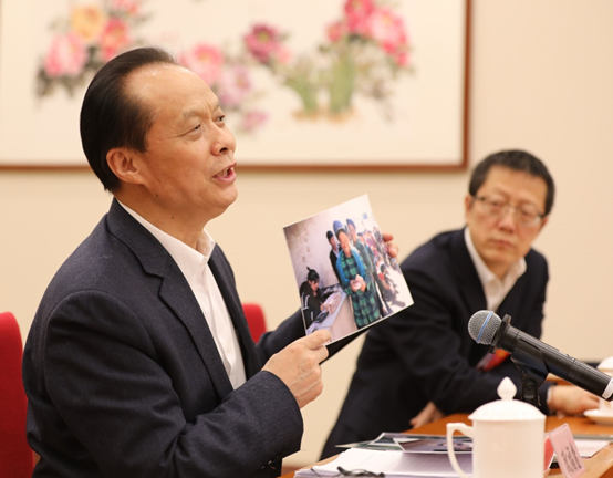 Deputy Ge Fu’neng shows a picture at a panel discussion of the second session of the 13th National People’s Congress. (Photo by Li Ge/People’s Daily)
