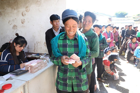 In the photo, residents of Huodeng village, Le’an township, Butuo county of Liangshan Yi Autonomous Prefecture are counting money they have earned by planting herbal medicines.