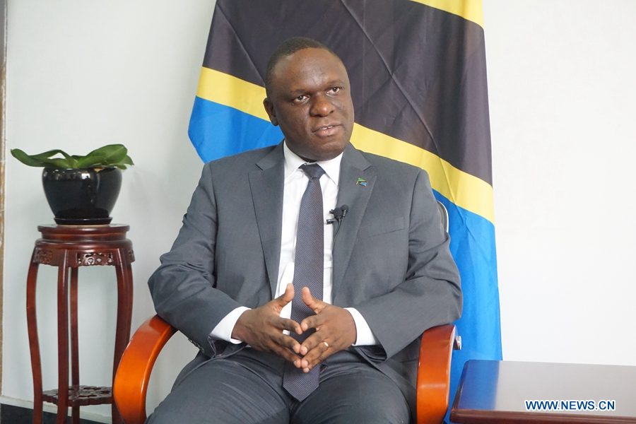Tanzanian ambassador to China Mbelwa Kairuki accepts an interview with Xinhuanet in Beijing, capital of China, March 8, 2019. (Xinhuanet/Li Xia)