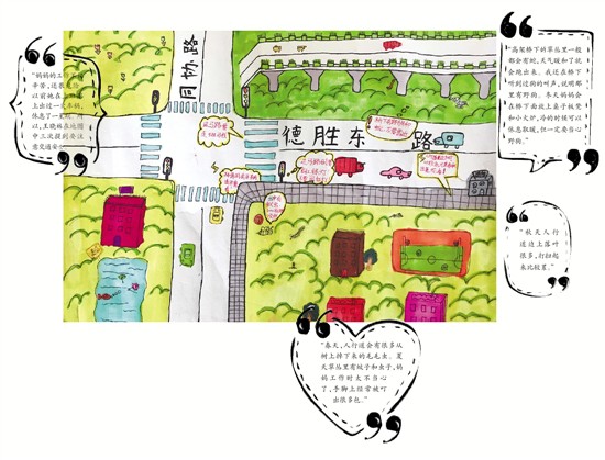 These words are on a hand-painted map, made by Wang Xiaolin as a “safe work manual” for her mother, a sanitation worker. On March 8, Xiaolin’s teacher suggested the students send small gifts to their mothers. Xiaolin decided to draw a picture to remind her mother to pay attention to safety.